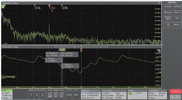 圖7:使用MSO6B和TPR探頭實測數(shù)據(jù)中心交換機芯片的電源紋波和噪聲