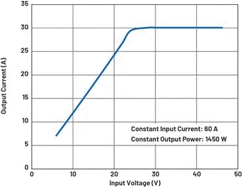 圖4. 轉(zhuǎn)換器輸入電壓與負(fù)載電流降額曲線。