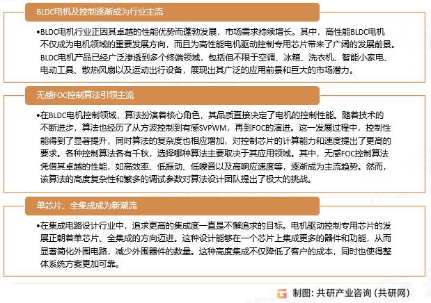 《2023-2029年中國BLDC電機驅(qū)動控制芯片行業(yè)市場供需態(tài)勢及市場趨勢預測報告》為共研產(chǎn)業(yè)研究院自主研究發(fā)布的行業(yè)報告,是BLDC電機驅(qū)動控制芯片領(lǐng)域的年度專題報告。隨著消費者生活質(zhì)量的提升和消費市場的升級,終端市場對電機控制性能的要求也水漲船高,現(xiàn)代電機控制不僅局限于簡單的開關(guān)或變檔操作,更需要實現(xiàn)高效率、低噪音、多功能的綜合控制。BLDC電機行業(yè)正因其卓越的性能優(yōu)勢而蓬勃發(fā)展,市場需求持續(xù)增長。其中,高性能BLDC電機不僅成為電機領(lǐng)域的重要發(fā)展方向,而且為高性能電機驅(qū)動控制專用芯片帶來了廣闊的發(fā)展前景。