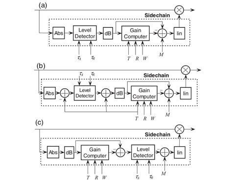 一般DRC包含分頻,擴(kuò)位,峰值/均值檢測(cè),啟動(dòng)和釋放平滑增益控制等,常見動(dòng)態(tài)范圍壓縮的框圖如下。