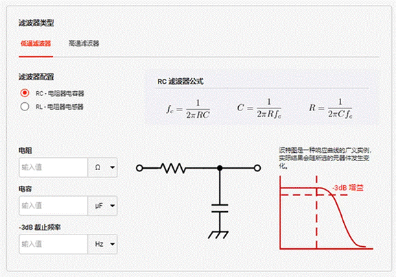 圖 1 :R = 1 kΩ和C = 1 uF的DigiKey RC低通濾波器計(jì)算器的圖像。得到的截止頻率約為1.6 kHz。