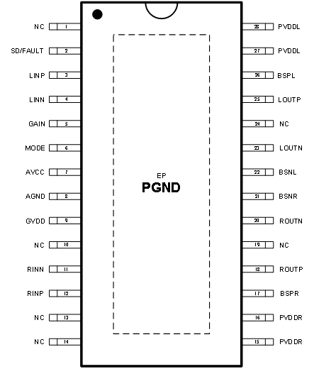 HT3382 2×75W (VDD=24V, RL=4Ω, THD+N=10%) AD52095 TSSOP-28 4.5V-26V 2×75W D類立體聲音頻功放