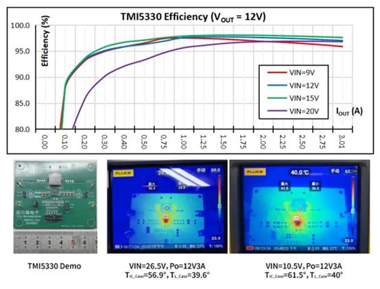 TMI5330 Demo效率與溫升測試效果圖: