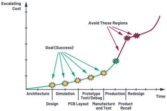 圖1. 生產(chǎn)的電路板出現(xiàn)問(wèn)題時(shí),成本可能急速上漲。