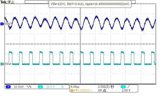 Vin=12V, Vout=5V, Iout=3A 時(shí) Ripple<17mV Ripple<19mV
