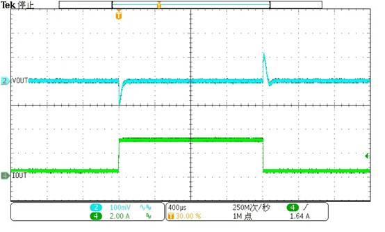 在12V輸入和3.3V輸出條件下,0.3A至3A負(fù)載變化下出色的瞬態(tài)響應(yīng)。