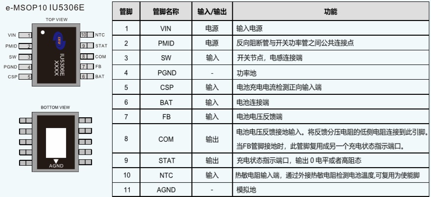 IU5306E是一款5V輸入,支持單節(jié)鋰電池或鋰離子聚合物電池的降壓充電管理IC。IU5306E集成功率MOS,采用同步開關(guān)架構(gòu), 使其在應(yīng)用時(shí)僅需極少的外圍器件,可有效減少整體方案尺寸, 降低BOM成本。IU5306E轉(zhuǎn)換器具有2A的充電電流能力, 充電電流可以通過外部電阻靈活可調(diào)。