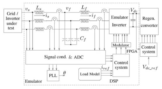 負(fù)載仿真的主要目標(biāo)是為實(shí)際電氣負(fù)載設(shè)計(jì)電源接口。它可以控制電源轉(zhuǎn)換器,同時(shí)通過在多個(gè)功率級別實(shí)時(shí)仿真負(fù)載來促進(jìn)系統(tǒng)驗(yàn)證。負(fù)載仿真的兩個(gè)重要方面包括仿真目標(biāo)的建模和設(shè)計(jì)有效的控制器[4]。圖 1顯示了電氣負(fù)載仿真器的示例原理圖。