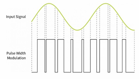 D類放大器在開始工作時會產(chǎn)生一系列固定幅度的矩形脈沖,它的面積和間隔,或每單位時間的數(shù)量不同。此外,模擬音頻輸入流的幅度變化也由這些脈沖表示,而且將調(diào)制器時鐘與輸入的數(shù)字音頻輸入信號同步也是可行的,因此無需將數(shù)字音頻信號轉(zhuǎn)換為模擬信號。調(diào)制器的輸出級通過交替打開和關(guān)閉輸出晶體管來控制它們的操作。