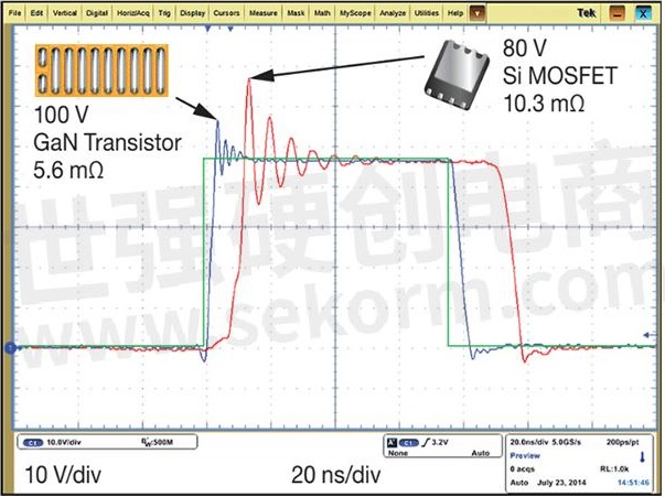 D類放大器的功率級(jí)目標(biāo)是實(shí)現(xiàn)小信號(hào)源的精確大信號(hào)復(fù)制,同時(shí)減少熱量耗散;贕aN的FET和IC更優(yōu)異的開關(guān)和熱性能產(chǎn)生的波形比硅MOSFET所能達(dá)到的波形更接近所需的理想波形。