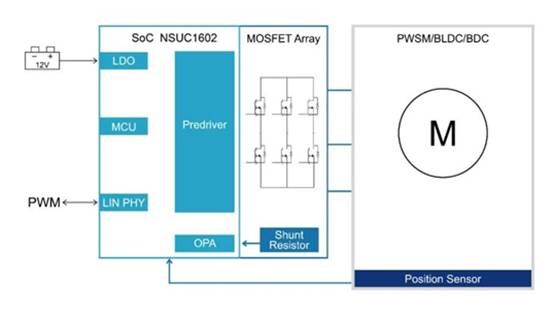 作為國(guó)內(nèi)領(lǐng)先的汽車芯片供應(yīng)商,納芯微繼2023年初國(guó)內(nèi)首發(fā)車用小電機(jī)驅(qū)動(dòng)SoC NSUC1610后,今日正式宣布推出高集成度嵌入式電機(jī)控制IC NSUC1602。與集成了LIN和MOS功率級(jí)的單芯片NSUC1610相比,NSUC1602集成式SoC支持外置獨(dú)立功率MOSFET的設(shè)計(jì),這一創(chuàng)新方案能夠輕松應(yīng)對(duì)更大電流需求的場(chǎng)景。