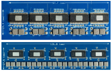 圖 2:一個(gè) 20 通道的汽車音響系統(tǒng)設(shè)計(jì),采用五個(gè) TAS6754-Q1 D 類放大器,與 TI 的 TAS6424E-Q1 D 類放大器進(jìn)行比較