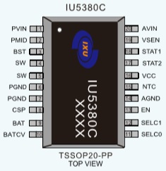 IU5380 IU5380C是一款接口36V高耐壓,9-26V寬輸入范圍,支持多種電池規(guī)格的2-4節(jié)鋰電池/鋰離子聚合物電池及磷酸鐵鋰電池的同步降壓充電管理IC。 TSSOP-20 9V-26V 最大3A同步降壓型2-4節(jié)多類型鋰電池充電管理IC