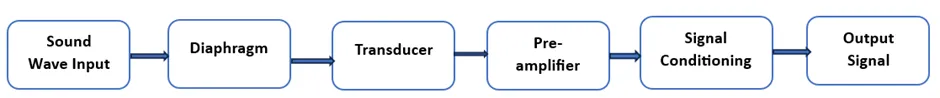 從核心角度來說,麥克風(fēng)傳感器是一種換能器:一種將能量從一種形式轉(zhuǎn)換為另一種形式的器件。在這種情況下,能量轉(zhuǎn)換是從聲能(聲波)轉(zhuǎn)換為電能(電壓)。當(dāng)聲波擊中麥克風(fēng)的振膜時,會使其振動。這些振動隨后被轉(zhuǎn)換為反映聲波幅度和頻率的電信號。