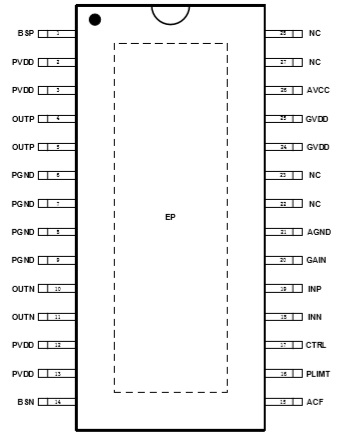 75W (VDD=24V, RL=4Ω, THD+N=10%)