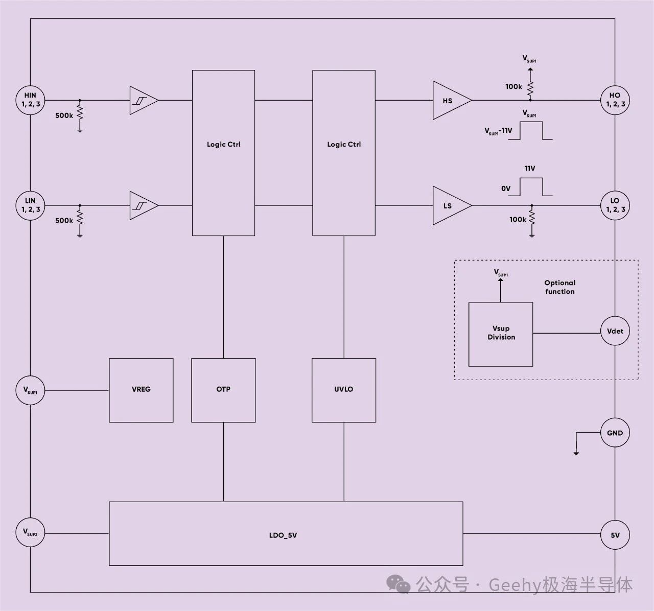 GHD3125R采用高低側(cè)通道匹配設(shè)計(jì),使芯片能同時(shí)滿(mǎn)足高側(cè)和低側(cè)功率半導(dǎo)體器件的驅(qū)動(dòng)需求,有效提高系統(tǒng)靈活性和整體性能。