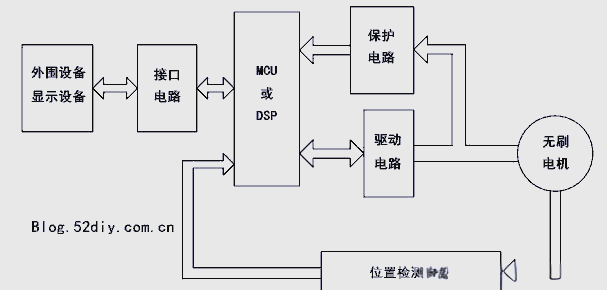 在無刷電機(jī)中,定子和轉(zhuǎn)子扮演著核心角色,而驅(qū)動電路則是確保電動機(jī)順暢運(yùn)行的關(guān)鍵。典型的無刷直流電動機(jī)控制或驅(qū)動系統(tǒng)框圖如下: