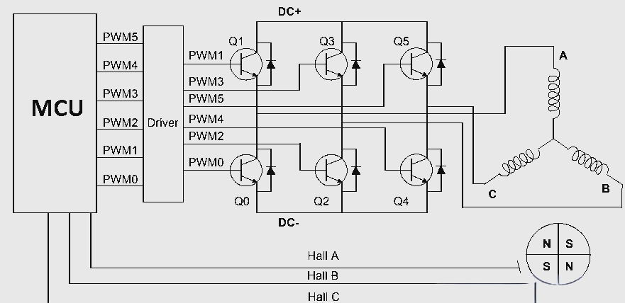 根據(jù)前述時序圖,我們可以清晰地看到,在任何時刻,總有一個相為正,一個相為負(fù),而第三個相則處于空閑狀態(tài)(或稱浮動狀態(tài))。這種靈活的相序控制,結(jié)合霍爾傳感器的輸入,為我們提供了兩個開關(guān)相位,從而實(shí)現(xiàn)對無刷直流電動機(jī)的精準(zhǔn)驅(qū)動。