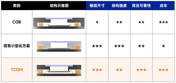 COB、現(xiàn)有小型化方案、TCOM對比