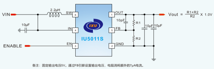 IU5011S是一 款高效同步升壓轉(zhuǎn)換器,特點有:具有升壓跟隨輸入電壓功能,最低1.0V啟動,低至2µA的超低靜態(tài)電流。最高能夠輸出5V/0.7A的電流。