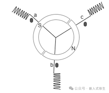在無刷電機(jī)中一般把3個霍爾傳感器間隔120°的圓周分布安裝如圖所示。輸出信號高低電平各占180°角。設(shè)輸出的高電平為1,低電平用0表示,則輸出三個信號用二進(jìn)制編碼表示如上表。