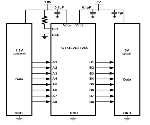 GT74LVCXTX45系列包括一路,二路,四路,八路和十六路收發(fā)器,是具有可配置電平轉(zhuǎn)換的雙電源總線收發(fā)器。最大傳輸速率可達(dá)到420Mbps,滿足高速數(shù)據(jù)傳輸要求。該收發(fā)器使用兩個(gè)獨(dú)立的電源軌,VCCA和VCCB的工作電壓范圍為1.65V至5.5V,支持寬電壓輸入。A端口參考VCCA,B端口參考VCCB,可以在1.8V、2.5V、3.3V和5.5V電壓節(jié)點(diǎn)之間實(shí)現(xiàn)通用低壓雙向轉(zhuǎn)換。具備VCC隔離特性,當(dāng)任一VCC輸入端處于接地狀態(tài),則所有輸入端均處于高阻抗?fàn)顟B(tài)。A端口和B端口的輸入電路始終處于激活狀態(tài),并具有邏輯高電平或邏輯低電平,以防止出現(xiàn)過(guò)多的ICC和ICCZ。GT74LVCXTX45的控制引腳由VCCA供電。該芯片的工作范圍為-40℃~125℃。