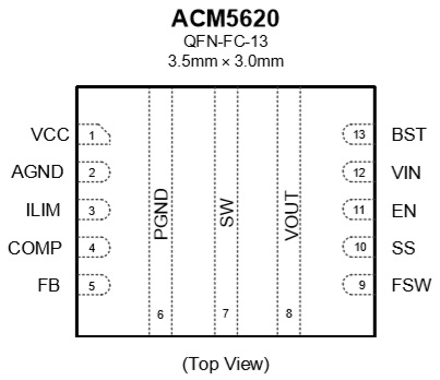 ACM5620采用3.5mm×3.0mm QFN封裝。