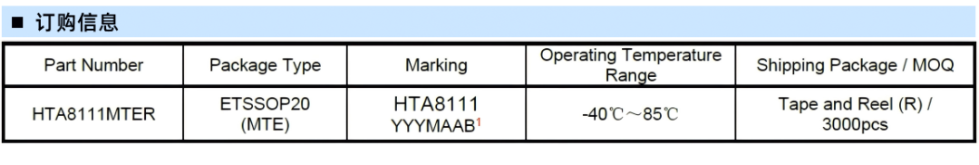 HTA8111 18W (VBAT=3.7V, RL=4Ω, THD+N=10%, fIN = 1kHz) TSSOP-20 3.0V-12V 18W內(nèi)置升壓單聲道D類音頻功放
