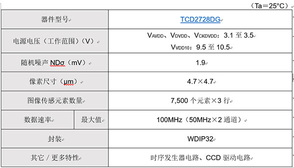 與東芝現(xiàn)有產(chǎn)品TCD2726DG相比,TCD2728DG具有更低的輸出放大器增益[5],可將隨機(jī)噪聲降低約40%[6]。這一改進(jìn)可提高多功能打印機(jī)的圖像質(zhì)量。新款CCD線性傳感器可實(shí)現(xiàn)高達(dá)100MHz(50MHz×2通道)的數(shù)據(jù)速率,可高速處理大量圖像,非常適合需要實(shí)時(shí)決策的檢測系統(tǒng)中的線性掃描攝像頭。