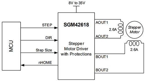 SGM42618 支持 1/32 細(xì)分的步進(jìn)電機(jī)驅(qū)動器