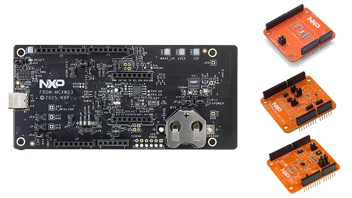MCX W23 FRDM平臺不僅以核心芯片為基礎(chǔ),更圍繞FRDM-MCXW23開發(fā)板構(gòu)建了一個可堆疊、模塊化的生態(tài)合作體系。該板集成三軸加速度傳感器FXLS8974CF和溫度傳感器P3T1755DP,配備完整的Arduino與Mikrobus™擴(kuò)展接頭,并支持多種可堆疊傳感器板,包括磁開關(guān)傳感器NMH1000、壓力/高度計傳感器MPL3115A2S等。此外,還可通過MCX W23 Click板增加對Bluetooth LE 5.3連接的支持。這一系列組件協(xié)同運(yùn)作,使開發(fā)人員能夠快速構(gòu)建原型并測試多種微型感測應(yīng)用,涵蓋智能電表、智能家居設(shè)備、可穿戴設(shè)備、資產(chǎn)追蹤器、醫(yī)療貼片及工業(yè)監(jiān)測系統(tǒng)等多種場景。