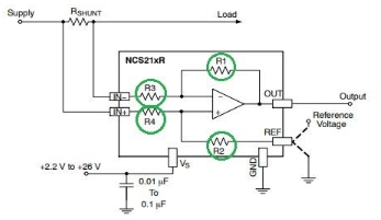 一大關(guān)鍵難題是上橋配置中的電流測量,其中的分流電阻并非以地為參考點。這就要求放大器需具備處理大共模輸入電壓的能力:部分型號的共模電壓上限可達 40V,而像 NCS7031 或 NCV7031(汽車級)和 NCS7041 或 NCV7041(汽車級)等型號,共模電壓上限甚至可達到 80V。這種能力對上橋和下橋電流檢測意義重大:既為設(shè)計提供靈活性,又能在上橋應(yīng)用中實現(xiàn)負載短路檢測。