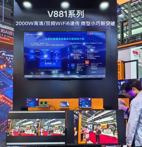 5月份,全志科技智慧視頻事業(yè)部副總經理陳智翔表示,針對智能眼鏡市場的需求,全志科技最先推出了V821芯片和解決方案。10月28日,在2025年CPS安博會一號館的全志科技展臺上,記者看到全志科技最新推出的V881芯片和解決方案。