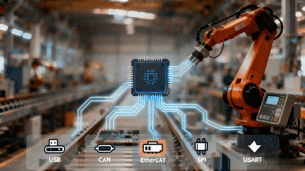 工業(yè)通信能力升級:芯片集成 ETherCat/USB/USART/CAN/SPI/I2C 等豐富的通信與控制接口,可實現(xiàn)高效數(shù)據(jù)交換,滿足工業(yè)自動化高實時通信需求。量產(chǎn)過程中,公司針對不同工業(yè)通信場景進行了大量兼容性和穩(wěn)定性測試。