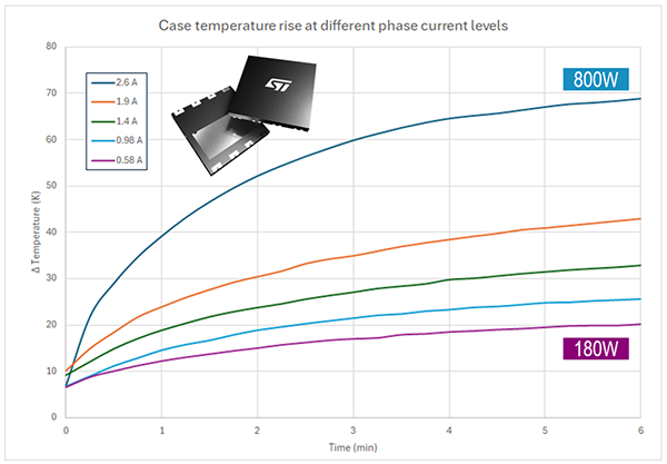 該GaN開關(guān)管可以安全地輸出約 800 W 的功率,而不會(huì)發(fā)生熱失控。溫升 Δt 小于 70 °C,在達(dá)到 150 °C 的最高工作結(jié)溫 (TJmax)之前,有充足的安全裕量。