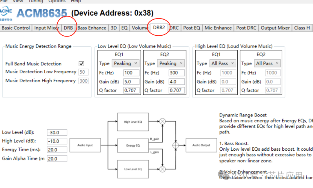 DRB自從至盛推出后,收到廣泛好評(píng),在8635/8687兩個(gè)升級(jí)產(chǎn)品中,在大家的強(qiáng)烈建議下,增加到兩組DRB,可以同時(shí)做到小音量低音增強(qiáng),大音量尖銳聲音衰減等搭配應(yīng)用。