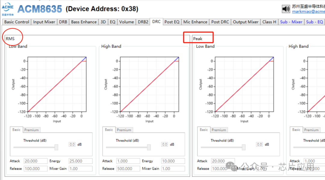 市面上的DRC都是基于RMS DRC技術(shù),RMS技術(shù)的不足之處在于需要相對(duì)較多的時(shí)間周期做檢測(cè),在該時(shí)間內(nèi)信號(hào)的失真是難以避免的。而peak DRC技術(shù)能夠根據(jù)用戶設(shè)定的Level,在RMS DRC完全起作用前,抑制失真,起到相輔相成的效果。