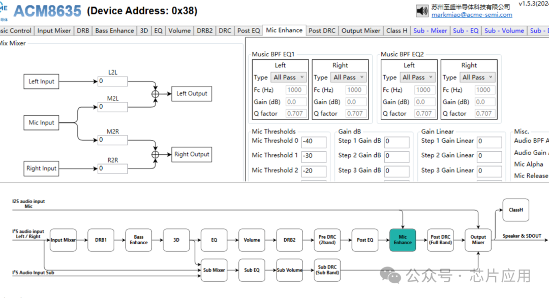ACM8635是三路BTL輸出架構(gòu),可以輸出30W+2*15W功率,集成升級(jí)后的DSP算法,集成麥克風(fēng)輔助處理人聲分離功能,集成動(dòng)態(tài)升壓功能。 |