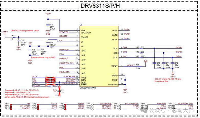 DRV8311HEVM 可以實(shí)現(xiàn)有傳感器、無傳感器或磁場(chǎng)定向控制,以對(duì)三相無刷直流電機(jī)進(jìn)行換向。