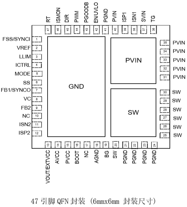 • 47引腳QFN封裝(6mmx6mm)