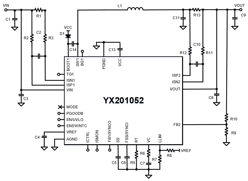 YX201052支持50KHz至3MHz的超寬開關(guān)頻率范圍,并集成了頻率擴(kuò)頻(FSS)以實(shí)現(xiàn)EMI優(yōu)化。 它還具有外部補(bǔ)償、可編程軟啟動功能,以減少啟動期間的浪涌電流。YX201052采用6mmx6mm 47引腳 QFN 封裝,帶有用于散熱的大裸露焊盤。