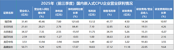 對于技術(shù)密集型的嵌入式CPU行業(yè)而言,A+H布局的價值不僅在于拓寬融資渠道,更在于提升企業(yè)國際化融資能力與品牌影響力,為技術(shù)研發(fā)與全球化布局注入動能。從業(yè)務(wù)基礎(chǔ)來看,晶晨股份2025年前三季度營收達50.71億元,凈利潤6.95億元,創(chuàng)下歷史同期新高,研發(fā)費用同比增長9.64%,其智能終端SoC芯片累計出貨量超10億顆,在消費電子嵌入式CPU領(lǐng)域占據(jù)優(yōu)勢地位,港股上市募資計劃重點用于提升研發(fā)能力與全球客戶服務(wù)體系建設(shè);北京君正則憑借“計算+存儲+模擬”協(xié)同優(yōu)勢深耕車規(guī)級與AIoT賽道,2025年前三季度營收34.37億元,凈利潤2.43億元,募資將聚焦技術(shù)研發(fā)與戰(zhàn)略收購,助力高算力嵌入式芯片的研發(fā)攻堅。兩家企業(yè)的A+H布局有望引發(fā)示范效應(yīng),帶動行業(yè)內(nèi)其他企業(yè)通過多元化融資方式匯聚資金,為國產(chǎn)嵌入式CPU在先進制程、生態(tài)建設(shè)等關(guān)鍵環(huán)節(jié)的突破提供資金保障,加速國產(chǎn)替代進程。