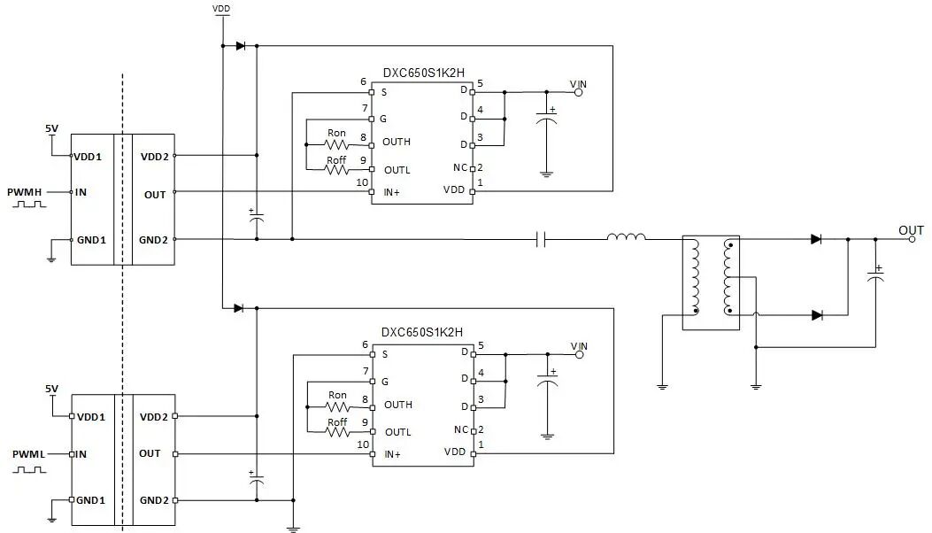 高集成度與易用性:DXC650S1K2H采用SOP10封裝,具有低寄生電感和電阻,用戶無需設(shè)計復雜的負壓驅(qū)動電路,也無需擔心多個器件并聯(lián)時的閾值不一致問題,大幅降低了設(shè)計難度與系統(tǒng)成本。