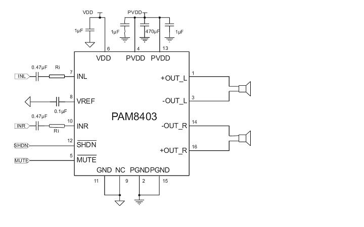 恒定4.8W/2.5V-5.5V(內(nèi)置自適應(yīng)Charge Pump模塊)/4Ω |