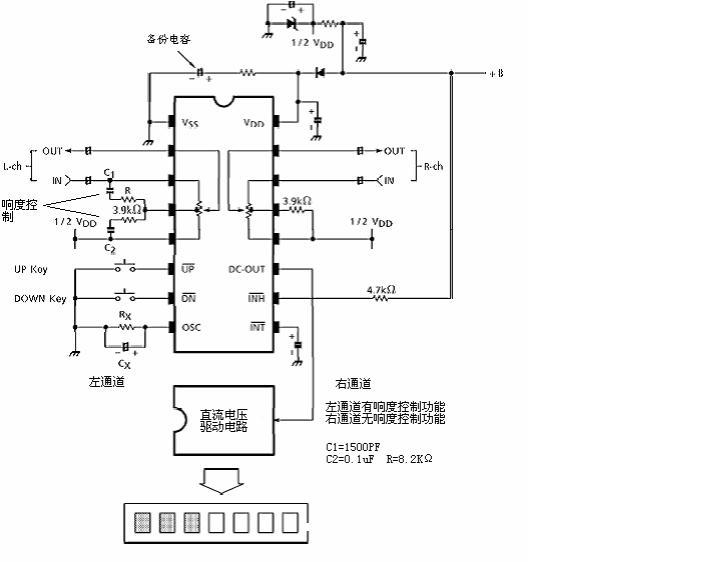 產(chǎn)品功能: 雙聲道音量控制器,按鍵控制音量加減