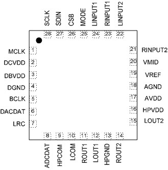 WM8988LGECO/RV   28-lead QFN   -25°C to 85°C