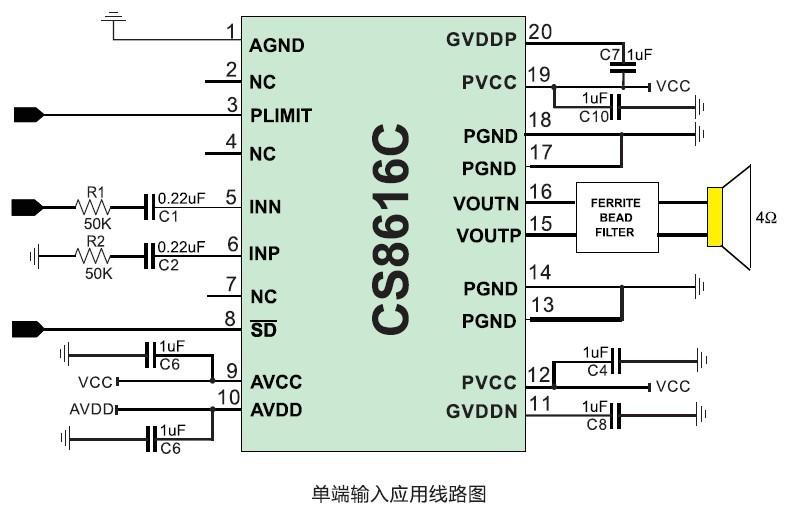 可使用單面PCB、免濾波、30W單聲道D類音頻功放IC,管腳兼容CS8622 |