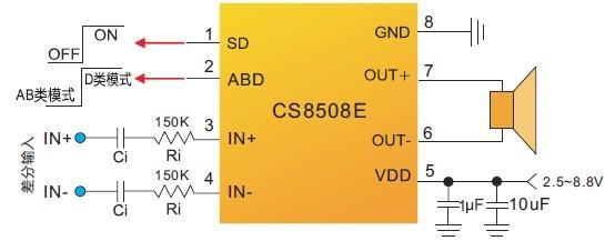 當前位置:首頁->產(chǎn)品展示->功放IC->CS8508E(AB類/D類切換8W單聲道音頻功放IC) |