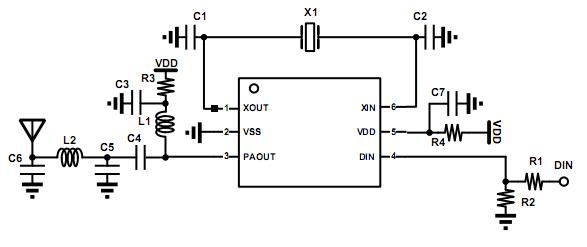 當(dāng)前位置:首頁->產(chǎn)品展示->無線收發(fā)IC->PT4455/XC4388(低電壓250MHz-450MHz UHF OOK/ASK發(fā)射IC)