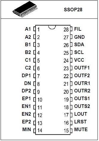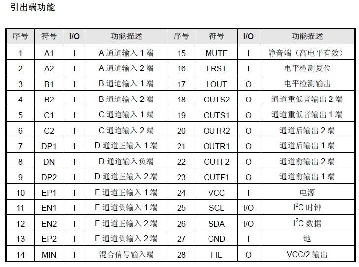 產(chǎn)品功能: 包括立體聲輸入端選擇模塊,準(zhǔn)差分輸入選擇模式及全差分輸入選擇模式;內(nèi)置輸入增益控制模塊,主音量控制模塊,響度控制,5 通道音量調(diào)節(jié)器,為重低音通道設(shè)置低通濾波器,內(nèi)置混合信號(hào)輸入端。優(yōu)化的開(kāi)關(guān)控制特性,可以大大減少開(kāi)關(guān)噪聲,很容易被微機(jī)控制,保證了高質(zhì)量的汽車(chē)音響系統(tǒng)。